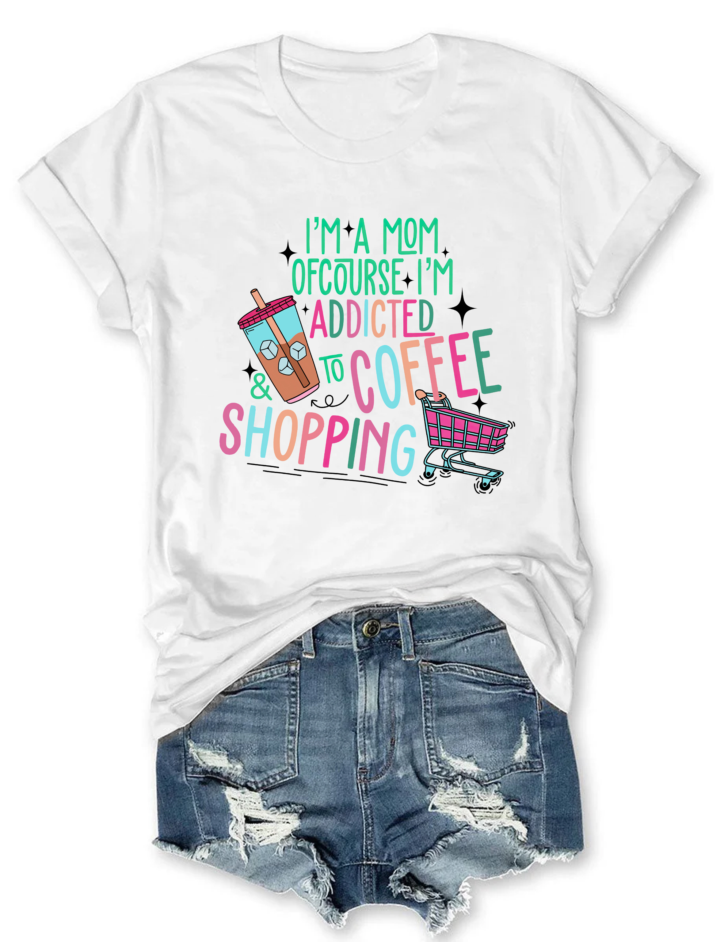 I'm A Mom Of Course I’M Addicted To Coffee & Shopping T-shirt