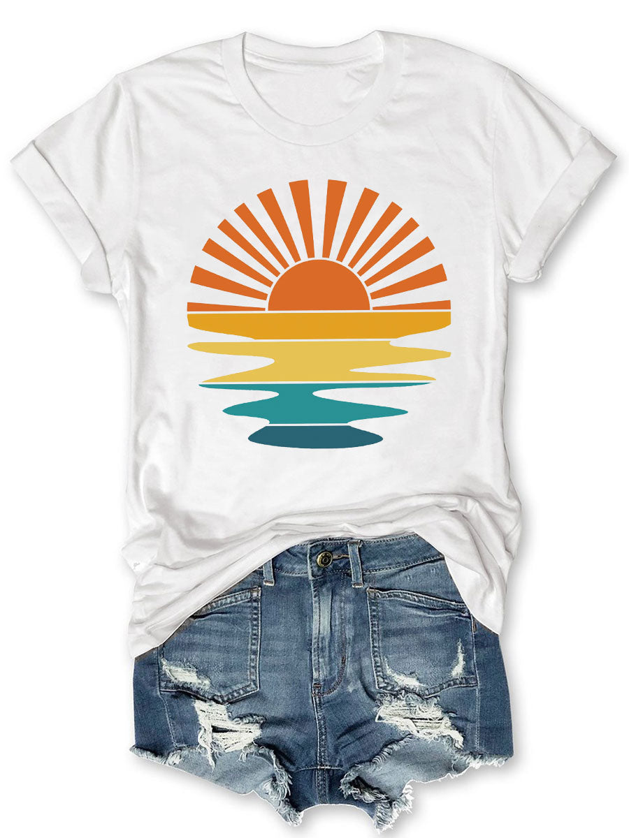 Retro Sunset Rays Wavy T-shirt
