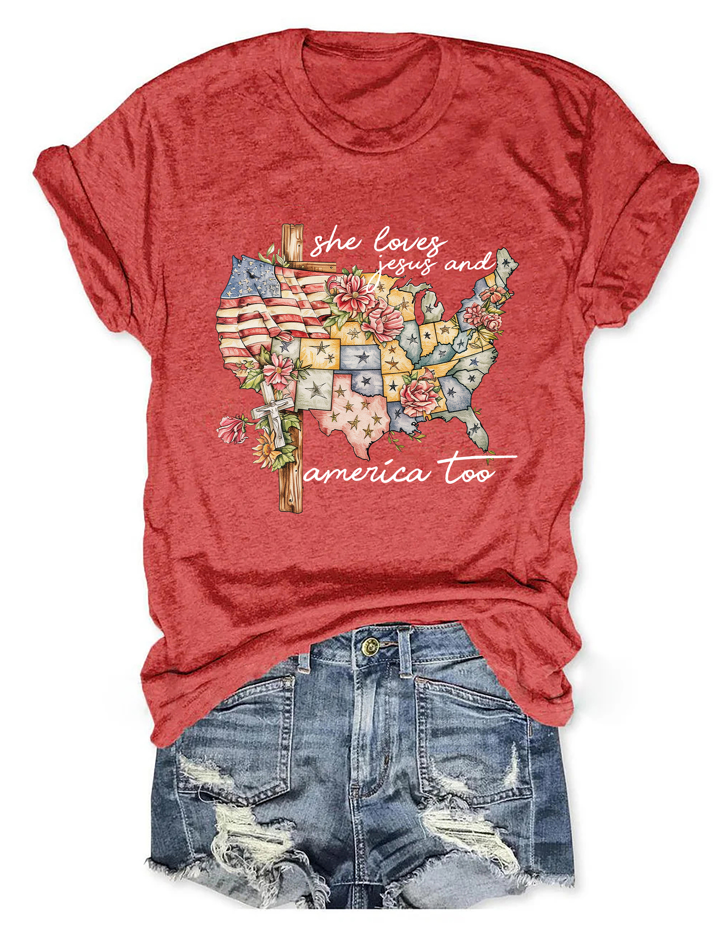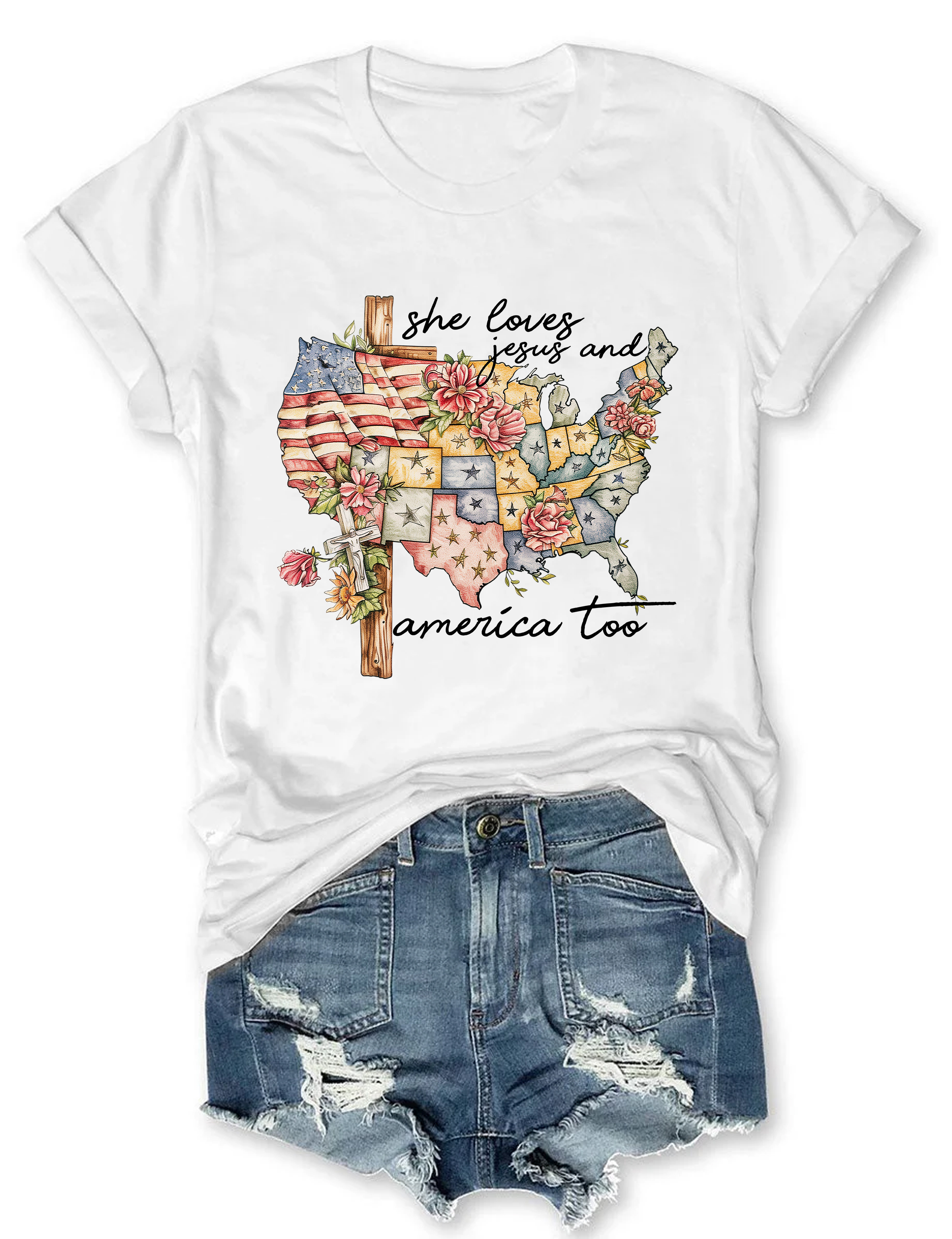 She Loves Jesus And America Too T-Shirt